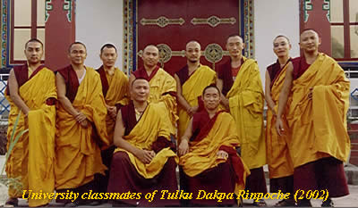 Hän aloitti dharmaopintonsa kahdeksanvuotiaana isänsä ohjauksessa Dzogchenin luostarin, yhden kuudesta keskeisimmästä Nyingma-perinteen luostarista, kylässä. Siellä hän opetteli tiibetinkielen lukemisen ja kirjoittamisen perustaidot ja monta sadhana-rituaalia, kuten Kunchok Shindun ja Karling Shitron, eli sata levollista ja raivoisaa jumaluutta, Karma Lingpan paljastaman hengellisen aarteen mukaan. Kahdeksantoista vuoden ikäisenä hänet otettiin Mindrollingin luostariin Intian Dehra Dunissa Hänen Pyhyytensä Mindrolling Trichen Rinpochen ja Kunnianarvoisan Khochhen Rinpochen siunauksella. Mindrolling on koko Nyingma-perinteen juuri- tai äitiluostari. Hän vastaanotti getshul-valat kunnianarvoisalta Mindrolling Khenchen Rinpochelta. Tulku Dakpa Rinpoche valmistui Ngagyur Nyingma Collegesta, Mindrolling-luostarin shedrasta eli korkeakoulusta valtuutettuna sutrayana- ja tantrayana- oppien haltijana opiskeltuaan siellä yhdeksän vuotta. Opintoihin kuului yleinen historia, runous ja pätevän havaitsemisen oppi, samoin kuin syventävät opinnot intialaisten ja tiibetiläisten mestareiden kommentaariteoksiin koskien Buddhan antamia vinaya-, sutra- ja abhidharma pitaka -opetuskokonaisuuksia kolmessa opetuskulkuneuvossa. Lisäksi hän opiskeli useita tekstejä laajasta tantrisesta tietämyksestä, kuten suuren mestarin Lochen Dharmashrin kommentaarit Kunkhyen Longchen Rabjamin Guhyagarbatantraan sekä Kunkhyen Longchen Rabjamin Dzogpa Chenpo Semnyid Ngalson, suomeksi Suuri täydellisuus: mielen olemus - uupumuksen huojentaja. Yhdeksän vuoden opintojensa aikana hän vastaanotti suurimman osan opetuksista Khenchen Tshewang Rigdziniltä ja myös edesmenneeltä Khenpo Jampal Tsheringiltä sekä monilta muilta korkeakoulun khenpoilta. Opintojensa aikana hän myös opetti khenpojensa määräyksestä muille luokille buddhalaisuuden historiaa, runoutta, pätevän havaitsemisen oppia, madhyamikaa ym. Hän toimi myös Minling Editorial Committeen, Mindrollingin julkaisutoimikunnan ensimmäisenä päätoimittajana kolmen vuoden ajan. Rinpochen päätoimittajakauden aikana julkaistiin Mindrollingin perimyslinjan historia ja Korkeakoulun eettiset säännöt.